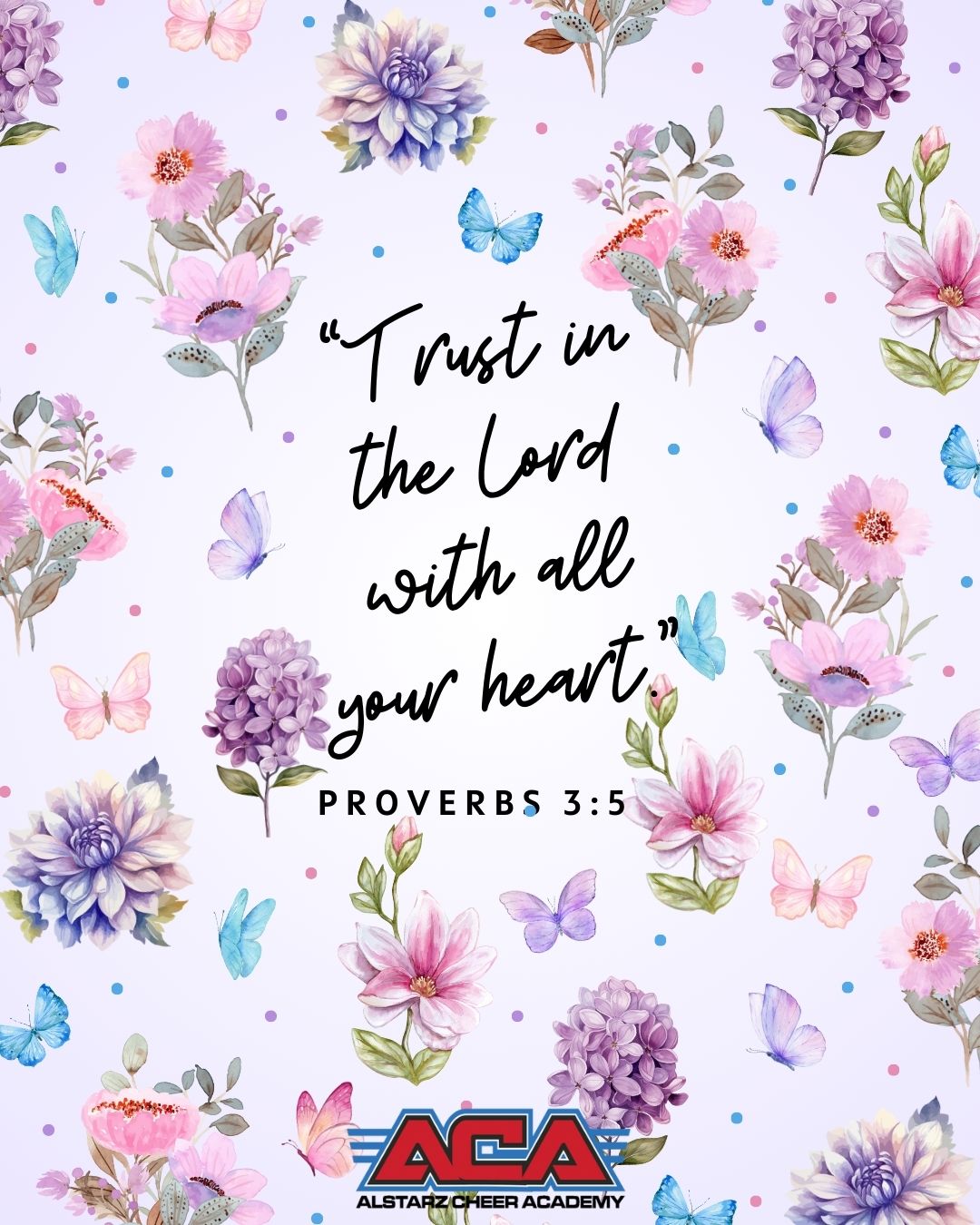 "Trust in the Lord with all your heart, and lean not unto your understanding. In all your ways acknowledge Him and He will direct your path."